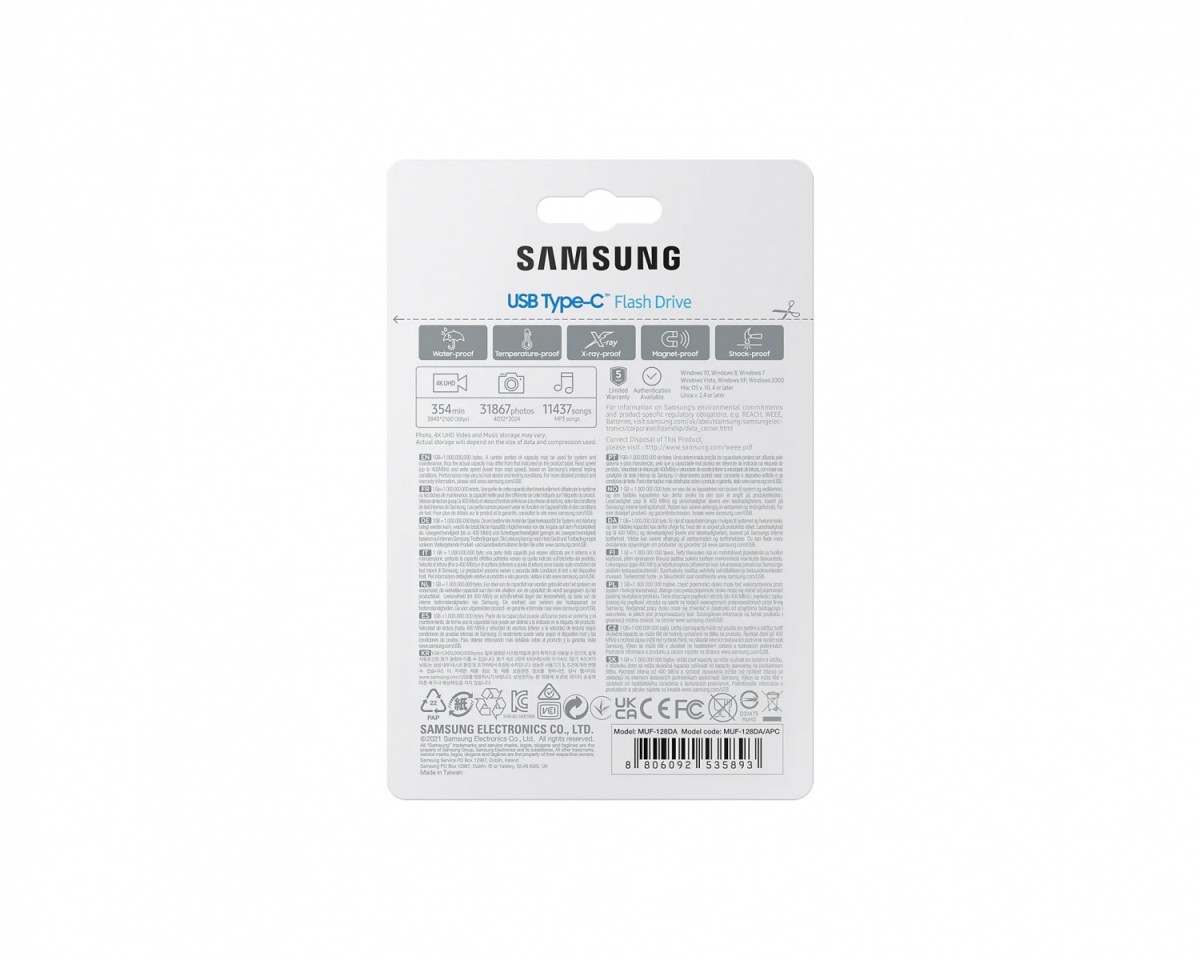 Gdziekolwiek będziesz, pliki są bezpieczne. USB Type-C od firmy Samsung - lidera w pamięciach flash - jest godnym zaufania magazynem pamięci na cenne dane. Jejgo korpus jest odporny na wodę, wstrząsy, pola magnetyczne, temperaturę i promieniowanie Rtg, na co najlepszym dowodem jest 5-letni okres ograniczonej gwarancji.